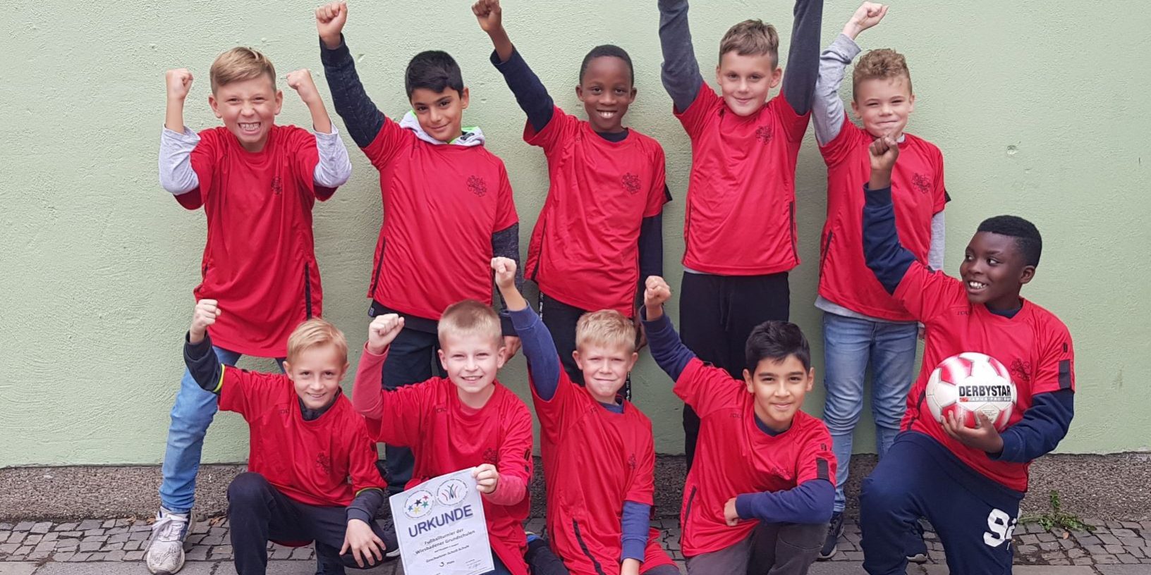 Am 04.09.2019 trugen bei bestem Fußballwetter alle 40 Wiesbadener Grundschulen die Stadtmeisterschaften im Fußball auf dem Sportgelände Waldstraße aus. Dabei erlangte die motivierte Auswahlmannschaft der GSS in der Gruppenphase Platz zwei, was sie für das Achtelfinale qualifizierte. Dies konnte in einem umkämpften und spannenden Spiel mit 2:1 gegen die Krautgartenschule gewonnen werden. Im darauf folgenden Viertelfinale konnte die Mannschaft ihre starke Teamleistung aus dem vorangegangenen Spielen wiederholen und siegte ebenfalls mit 2:1 gegen die Konrad-Duden-Schule. Somit wurde auch das Halbfinale erreicht, welches leider mit 0:2 gegen den späteren Stadtmeister Diesterwegschule verloren ging. Doch nachdem die erste Enttäuschung abgeschüttelt war, konnten nochmals alle Reserven für das Spiel um Platz drei mobilisiert werden. Nach der regulären Spielzeit endete das torreiche Spiel 2:2 – das Achtmeterschießen musste die Entscheidung bringen. Mit viel Nervenstärke, einer überragenden Teamleistung und einem bärenstarken Torwart gewann die GSS-Auswahl schließlich mit 4:3 und erklomm das Siegerpodest. Herzlichen Glückwunsch an das gesamte Auswahlteam der Geschwister-Scholl-Schule!